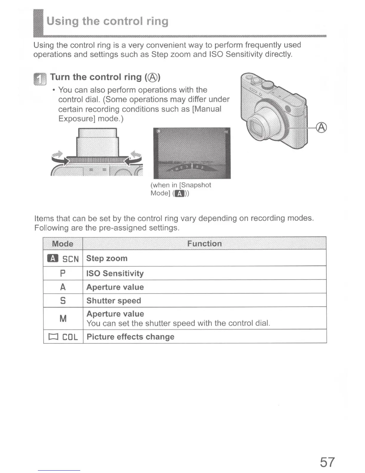 Using the control ring is a very convenient way to perform frequently used
