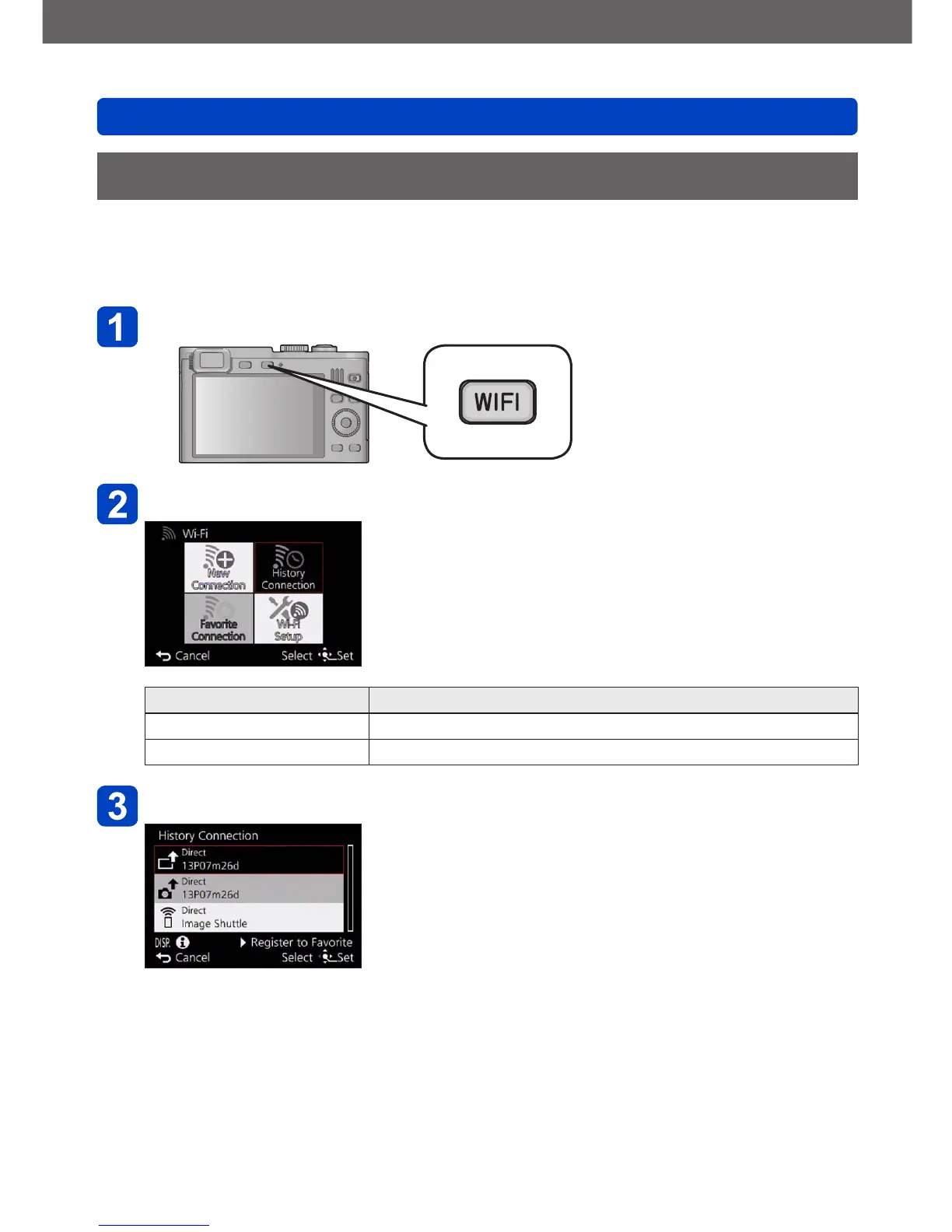 The camera keeps a history of times you used the Wi-Fi function. You can register items