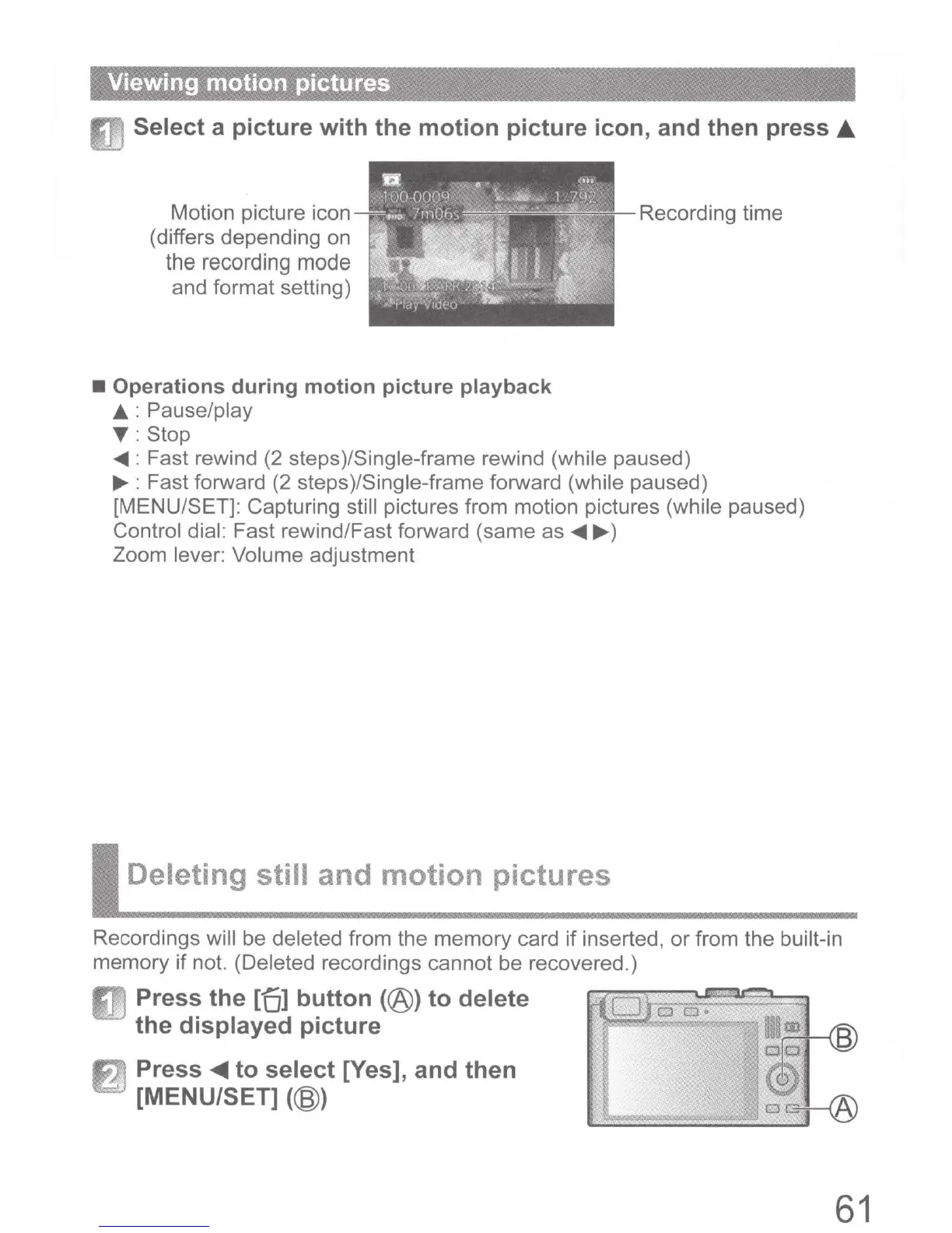 [MENU/SET]: Capturing still pictures from motion pictures (while paused)