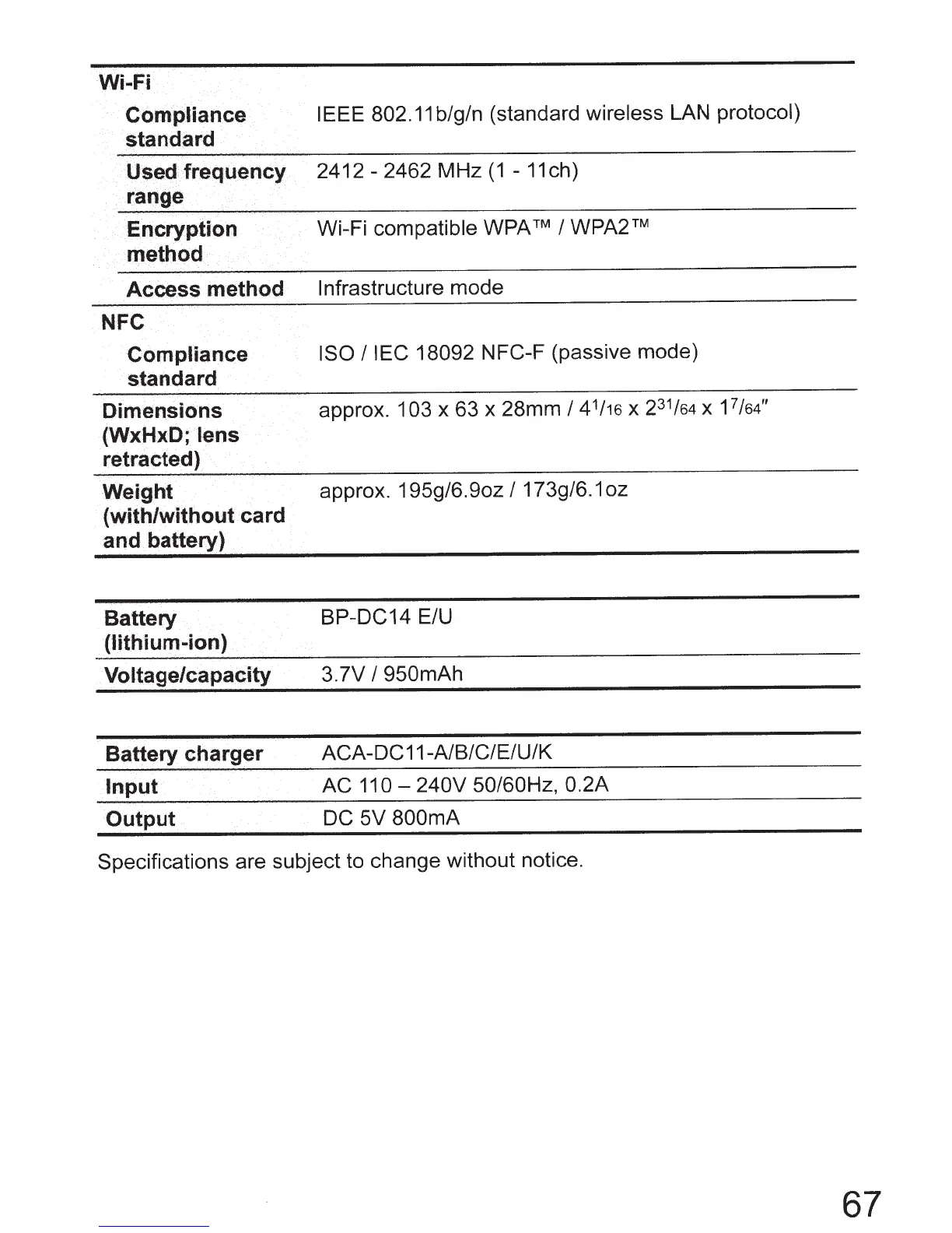 Specifications are subject to change without notice.