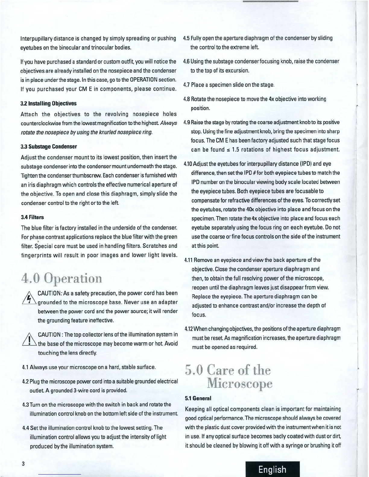 Leica CME - Operation; Operating Procedures; Care of the Microscope; General Cleaning and Maintenance