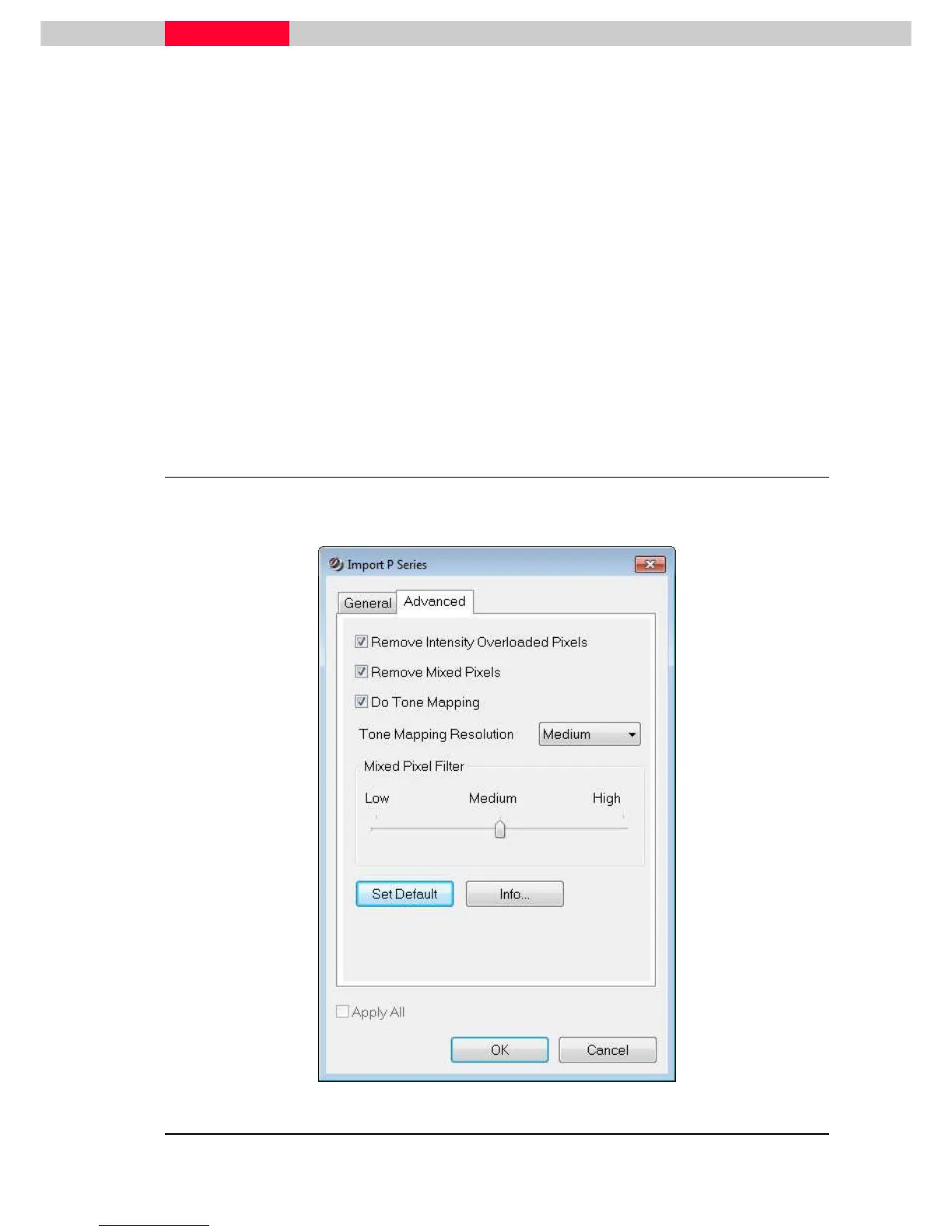 The Advanced tab is only available when importing scan data from the P Series Scanners. It