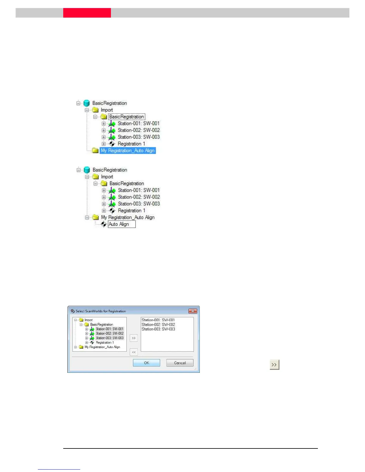 Note that the newly created registration object, “Auto Align”, is represented with a black and