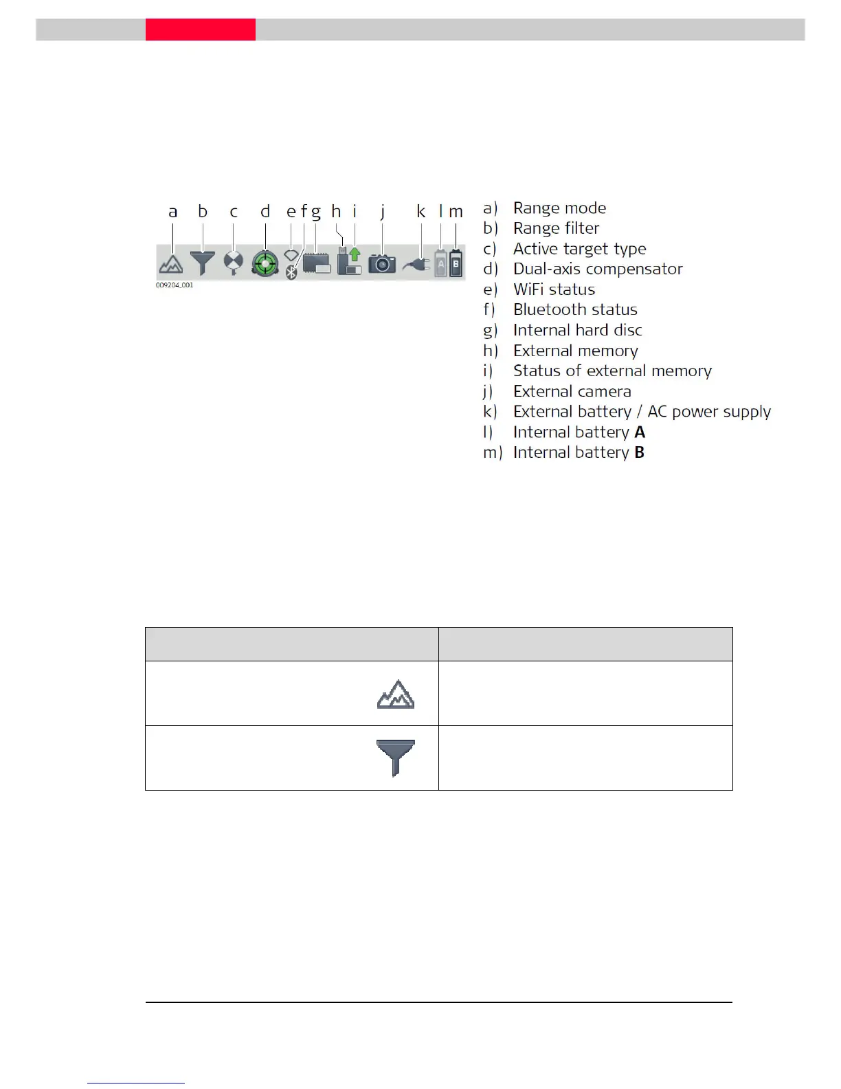 Status bar icons display status information of the instrument. Their appearance changes