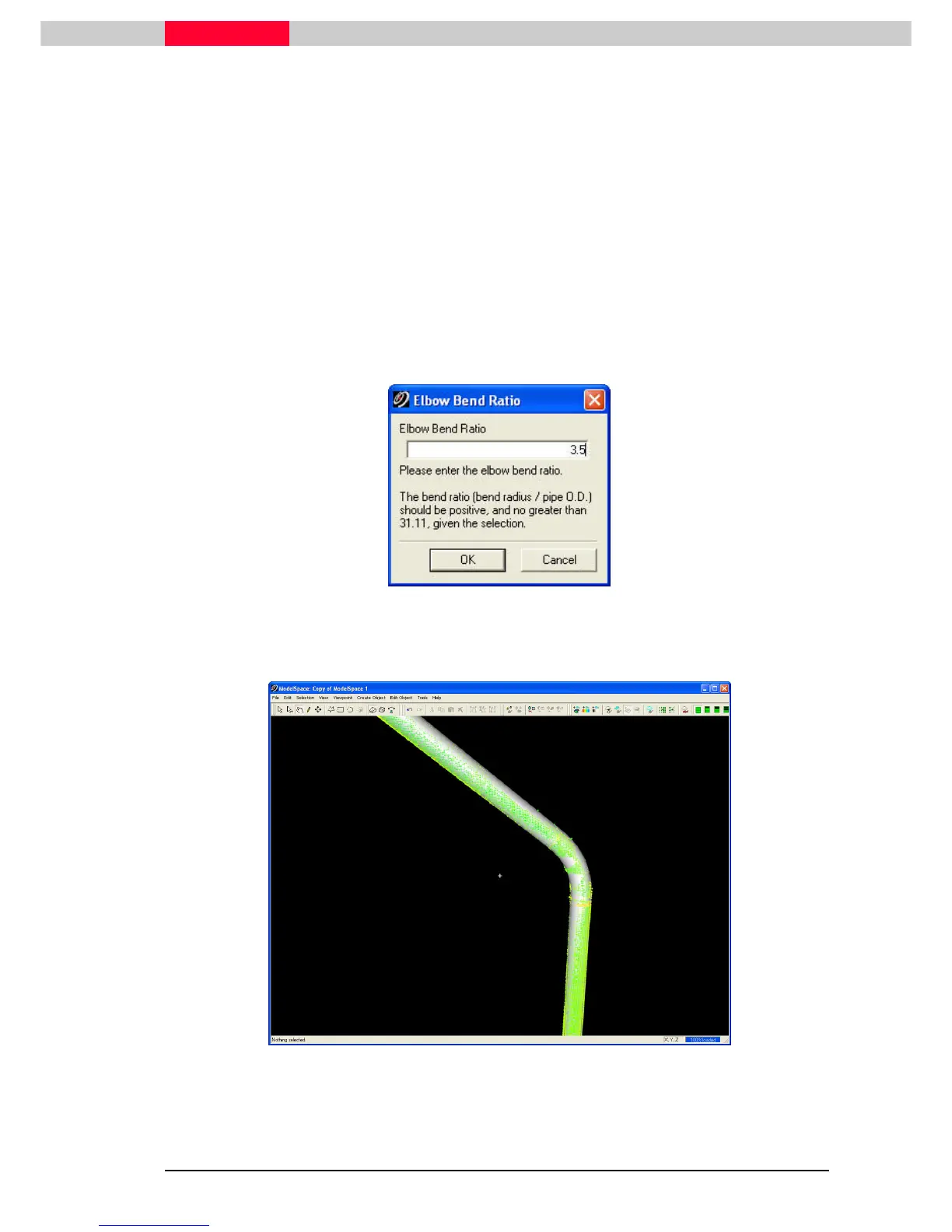 6) Click OK to accept the value. The elbow bend ratio of the elbow is adjusted, while