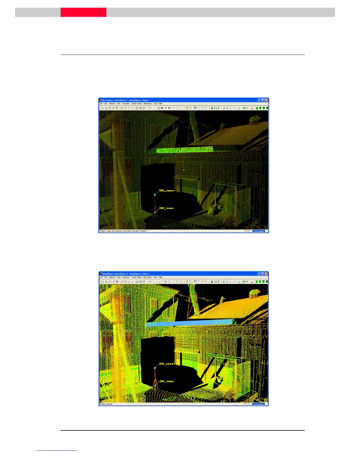 1) Point cloud sub-select the beam that runs at an angle between the two buildings (just above