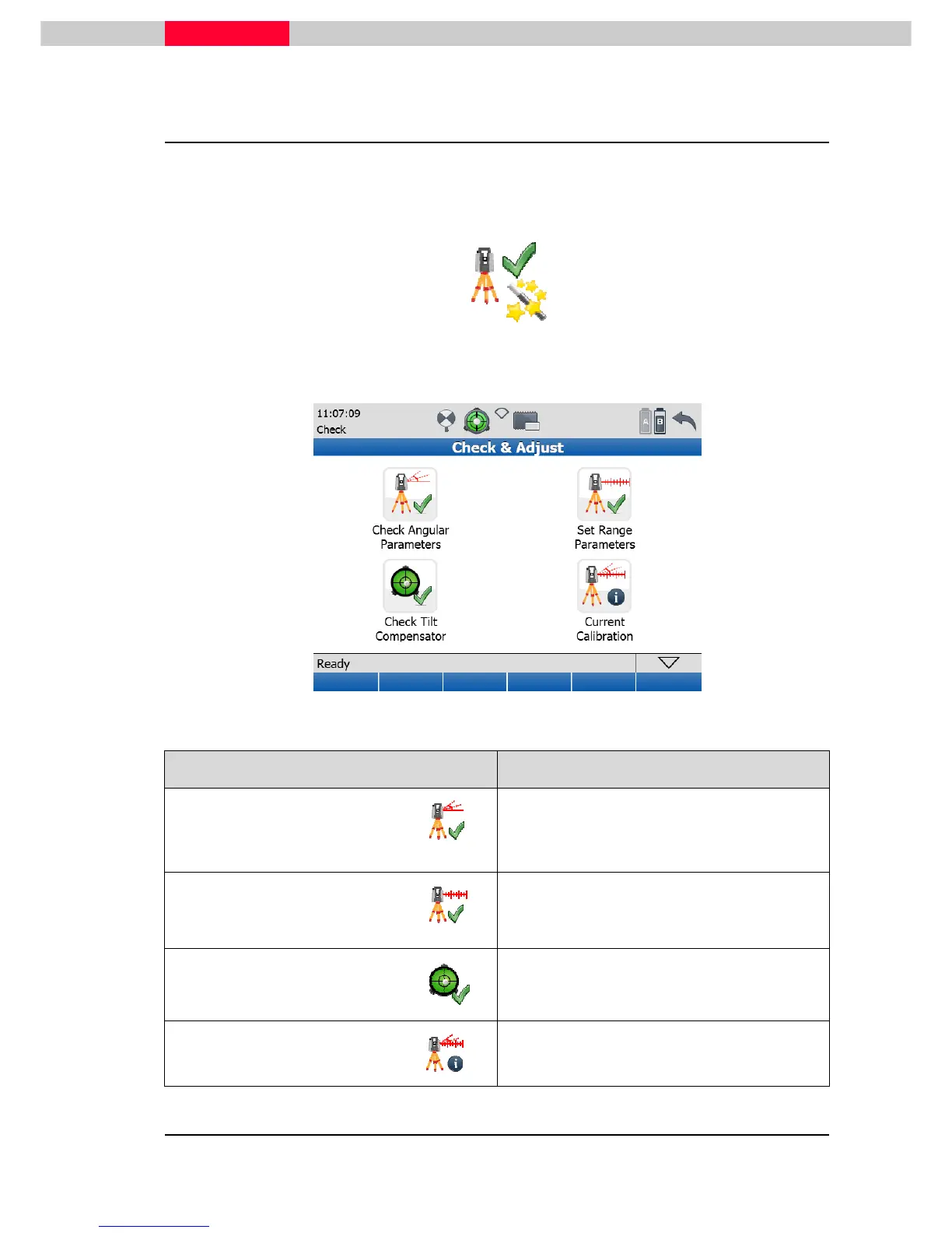 parameters, checking the tilt compensator, and to check the current calibration settings are