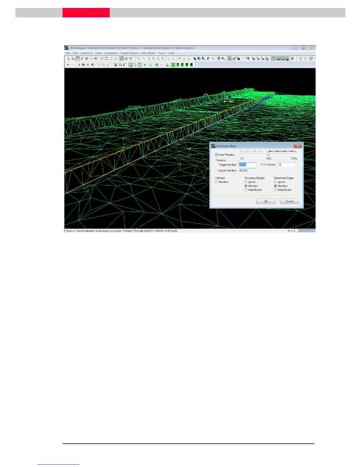 In the end, decimate the mesh to 1% of the original, maintaining the boundary edges and
