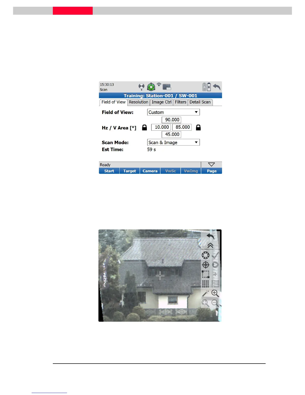 A more comfortable way to define the field of view is to use the internal camera. On pressing