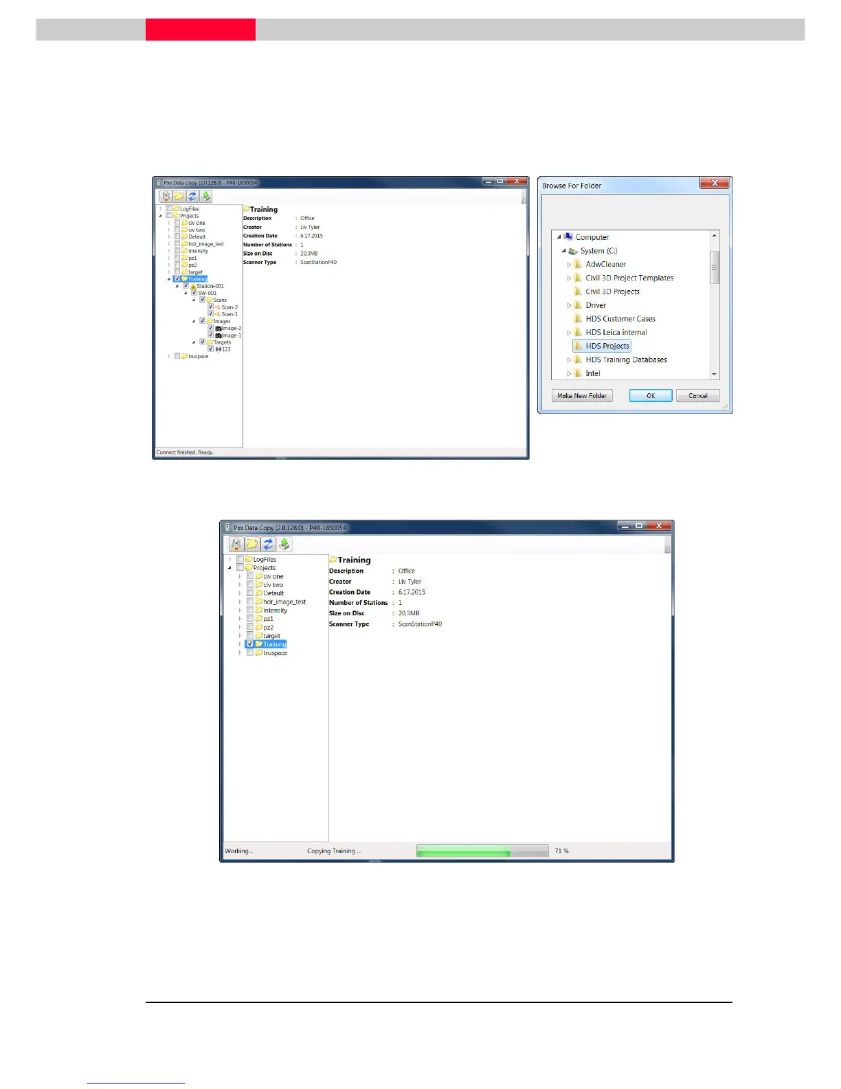 The P30 Data Copy Tool provides downloads of project data and log files. On the left side