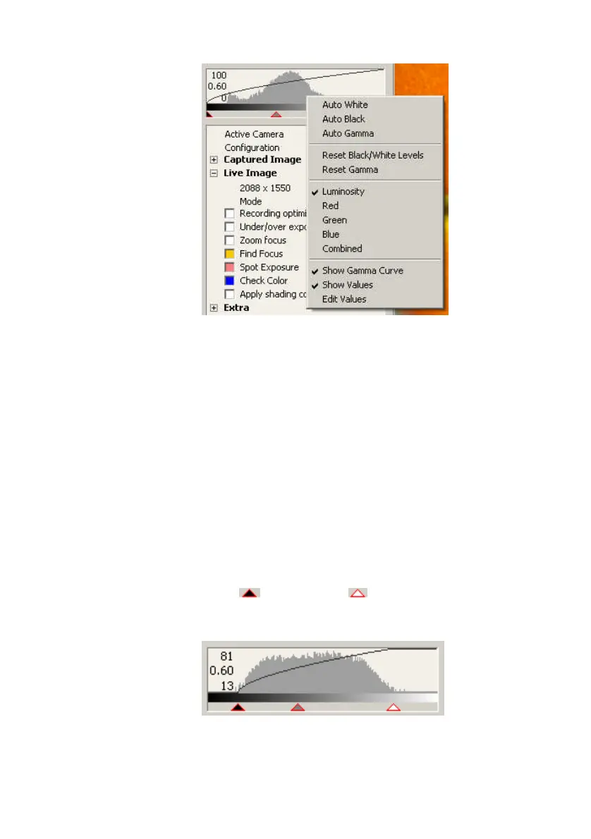 To display the values for Gamma and Black/White levels
