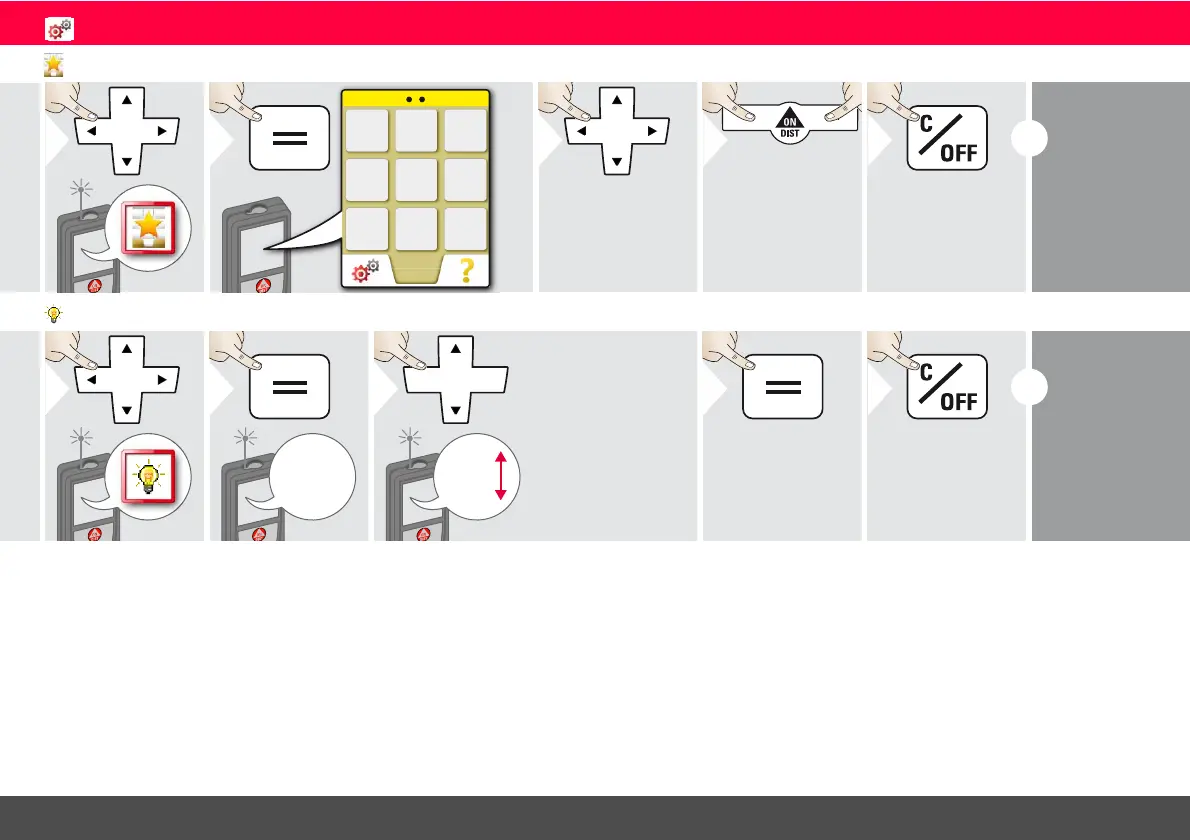 Leica DISTO E7500 - Customizing Favorites; Screen Illumination Adjustment