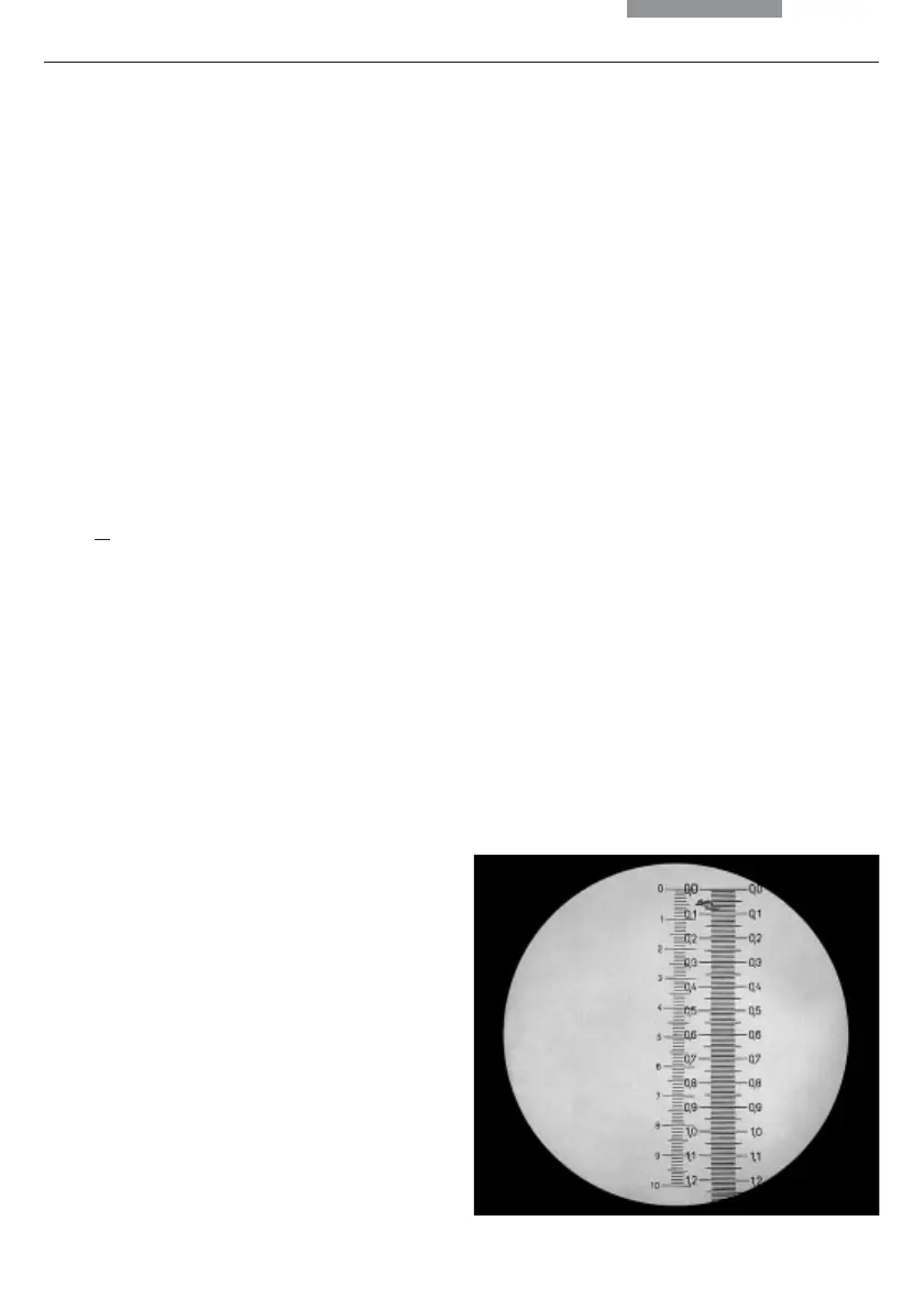 Scale division of the graticule in the eyepiece (left)