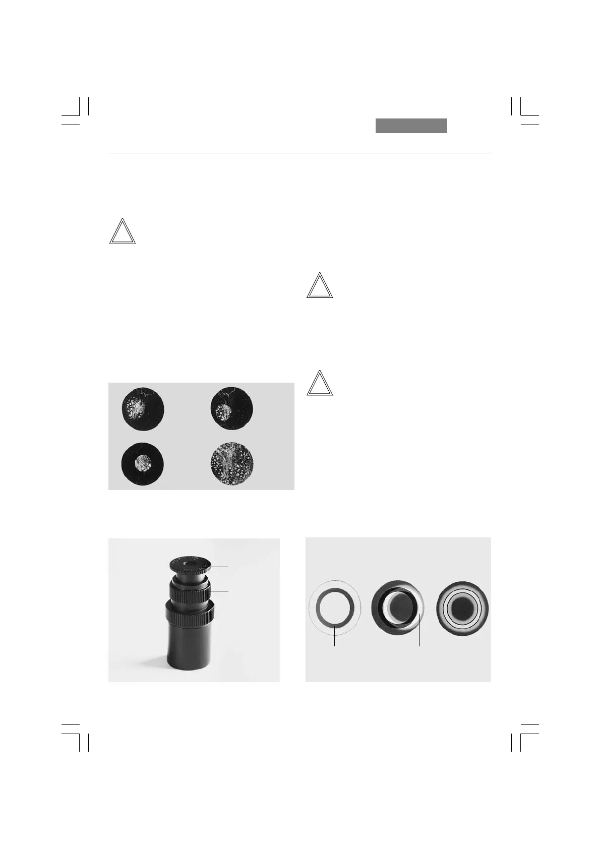 a Leuchtfeldblende nicht fokussiert, nicht zentriert,