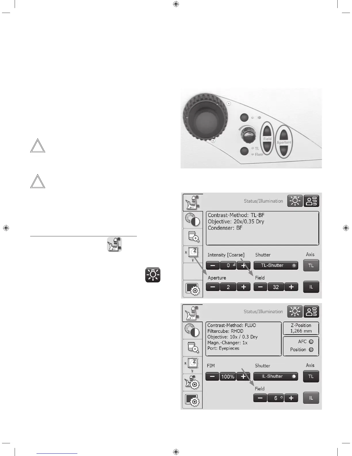 5. OPERATION - APERTURE AND ILLUMINATED FIELD DIAPHRAGM