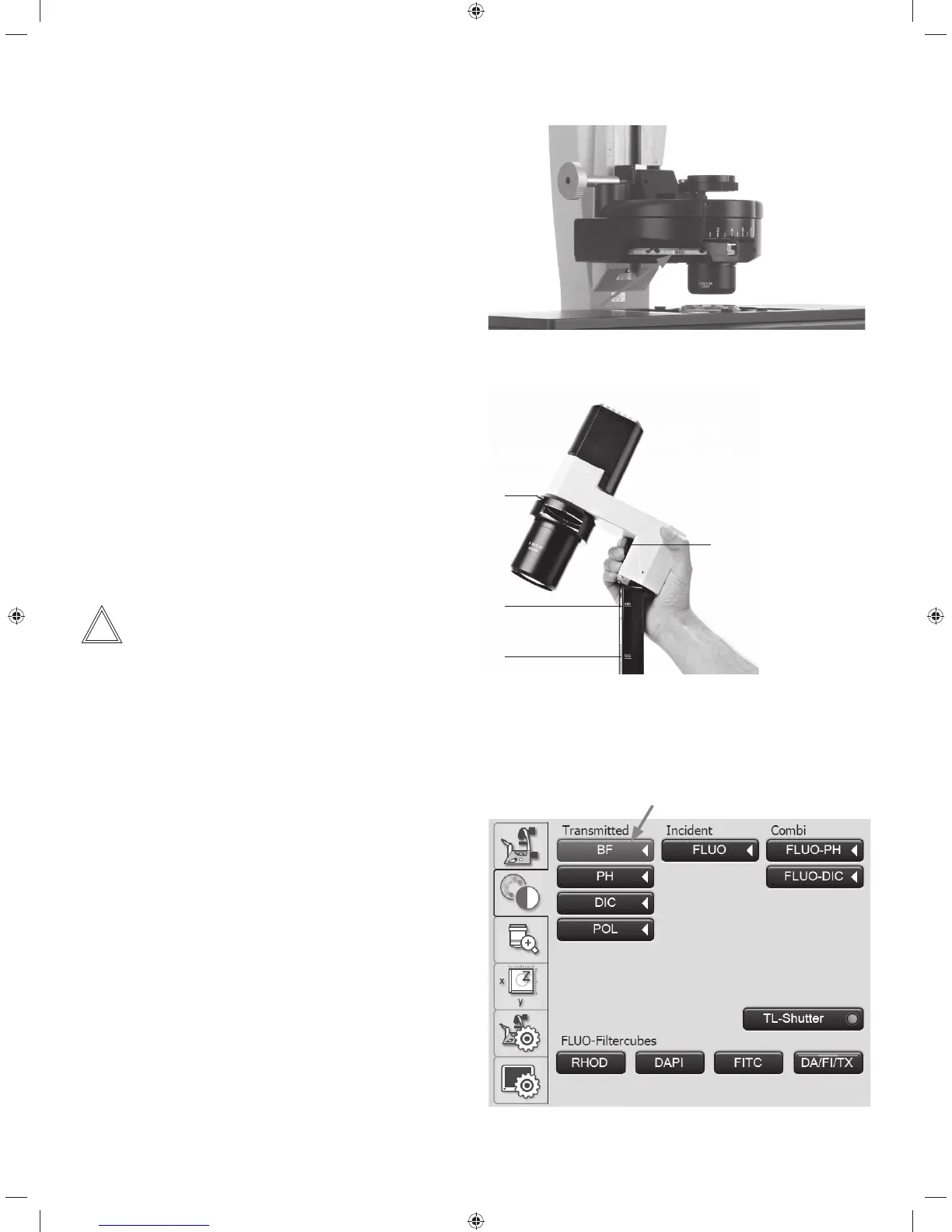 An empty position or the filter cube "DAPI-TL" on the fluo-