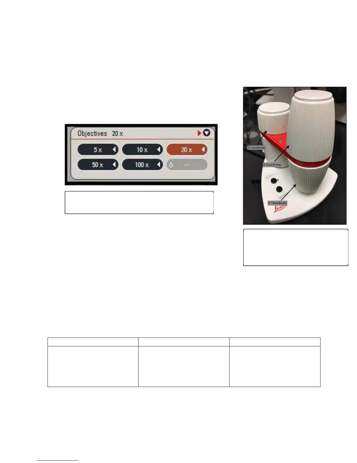 1) Adjust the specimen to where you want to be using the X and Y controls