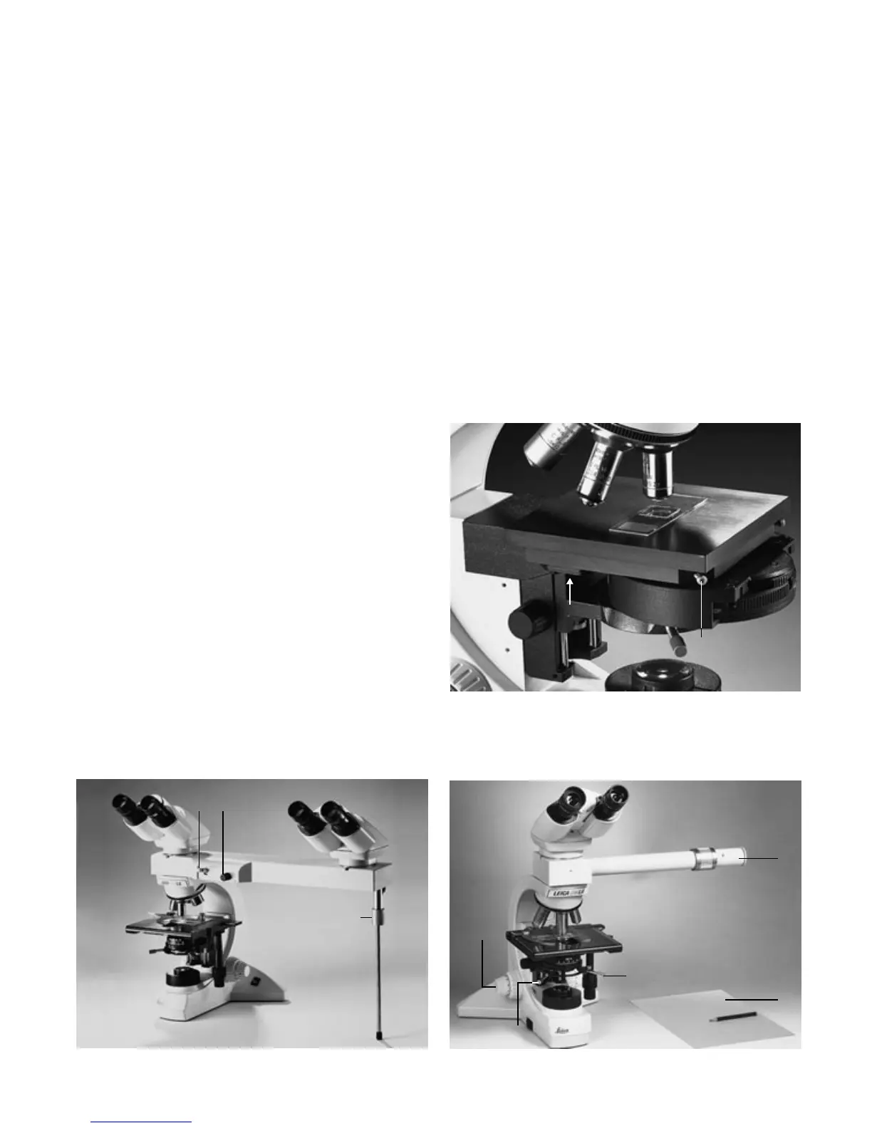 1 Vis de fixation, 2 Vis sans importance pour le microscope