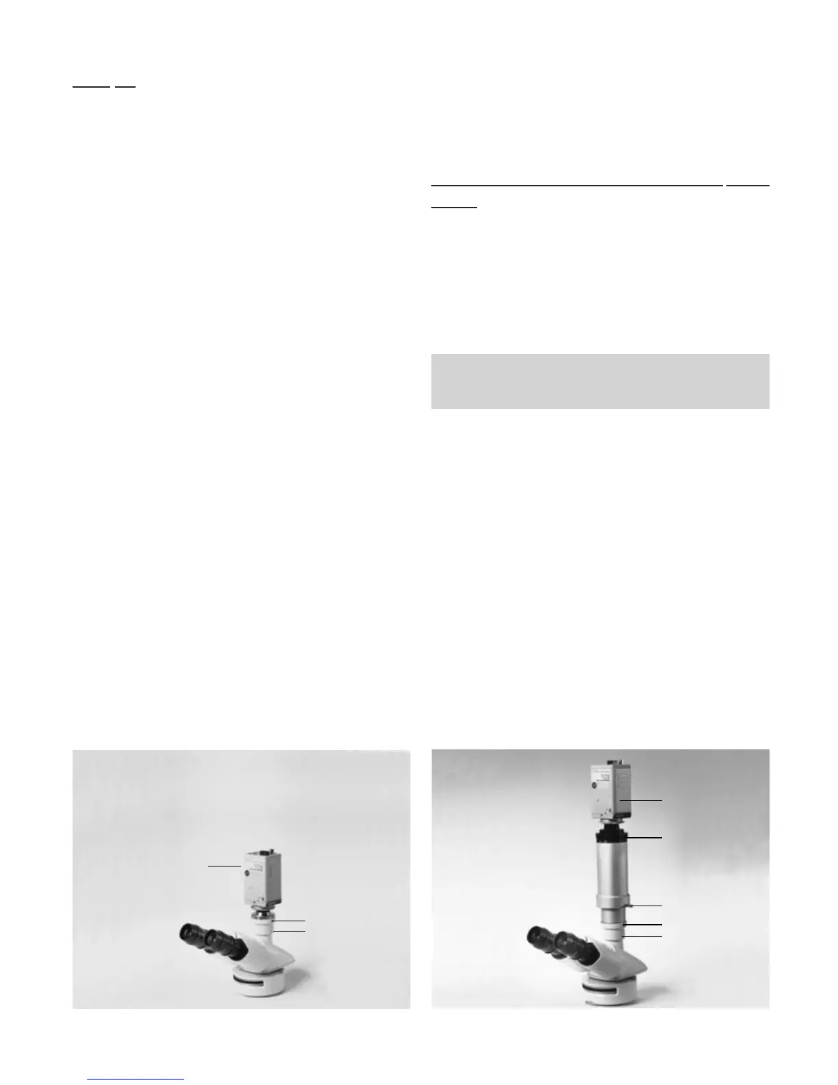 1 TV camera, 2 Adapter with c-mount thread, 3 Clamp screw, 4 Photo adapter tube