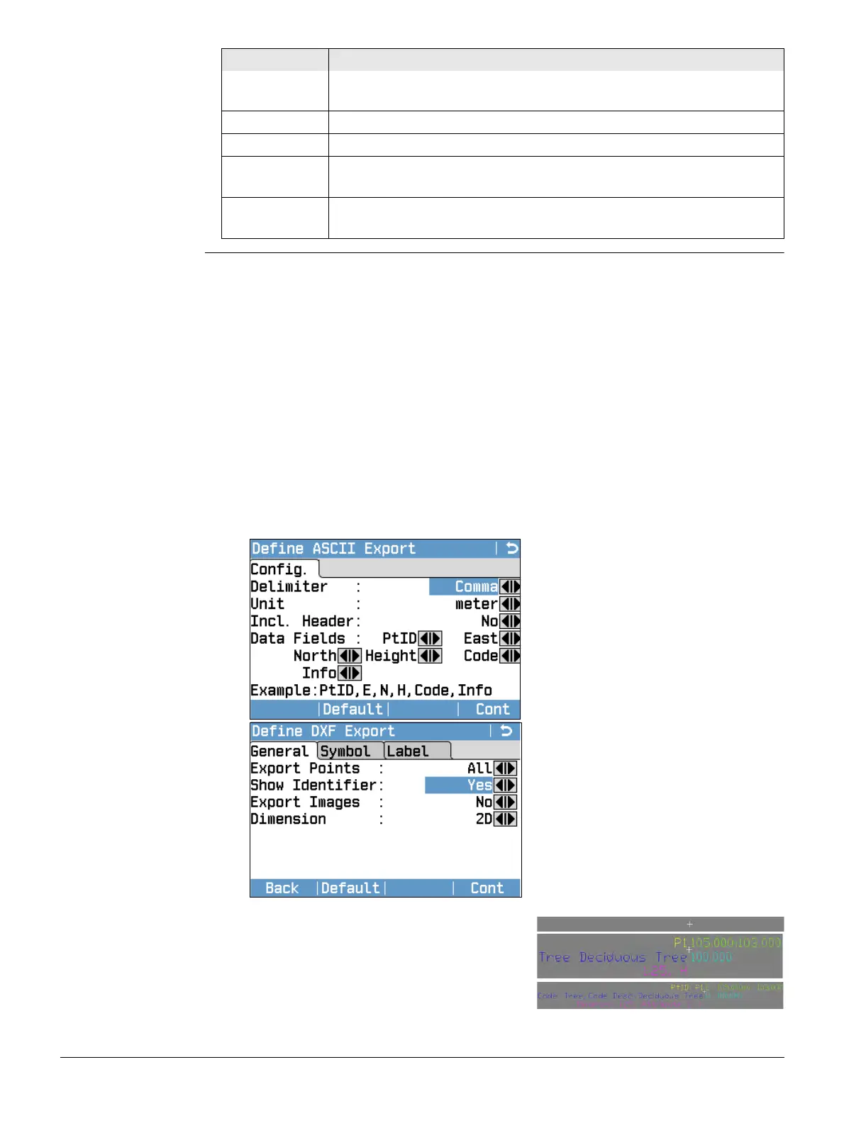 DXF Custom: To export data using an USB stick. The DXF format is user definable.