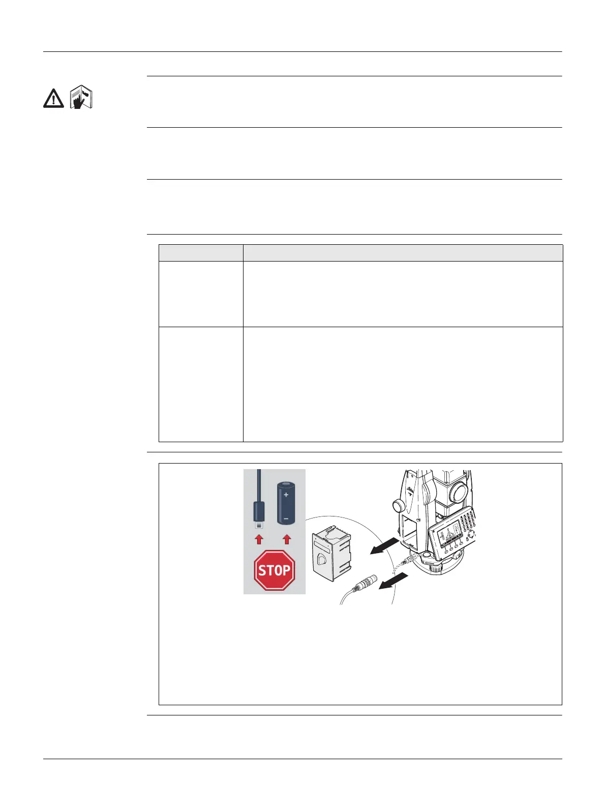 Do NOT remove the battery during operation of the instrument, or during the shut-