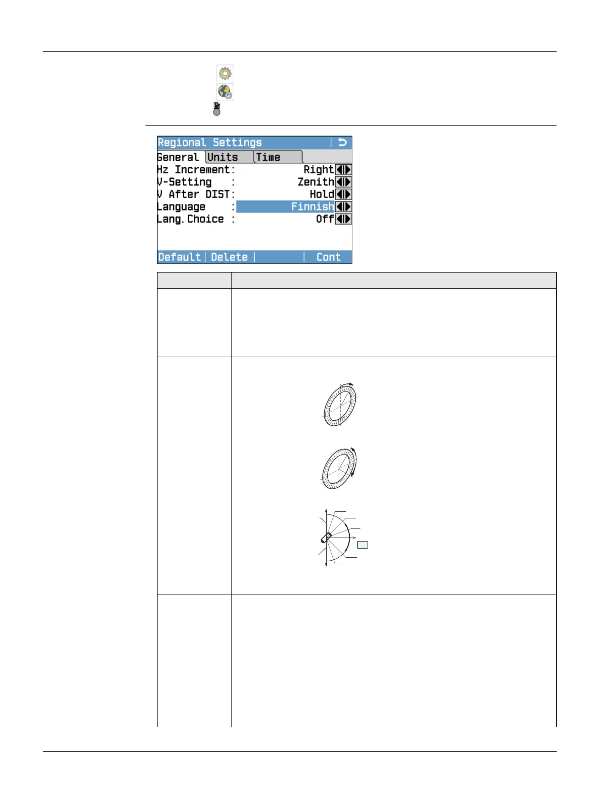 Hz Increment Right Set horizontal angle to clockwise direction measure-