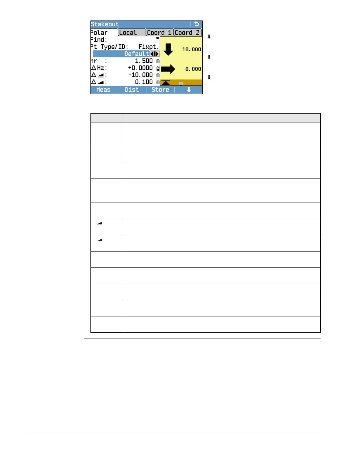 ∆Hz Angle offset: Positive if stake out point is to the right of the measured