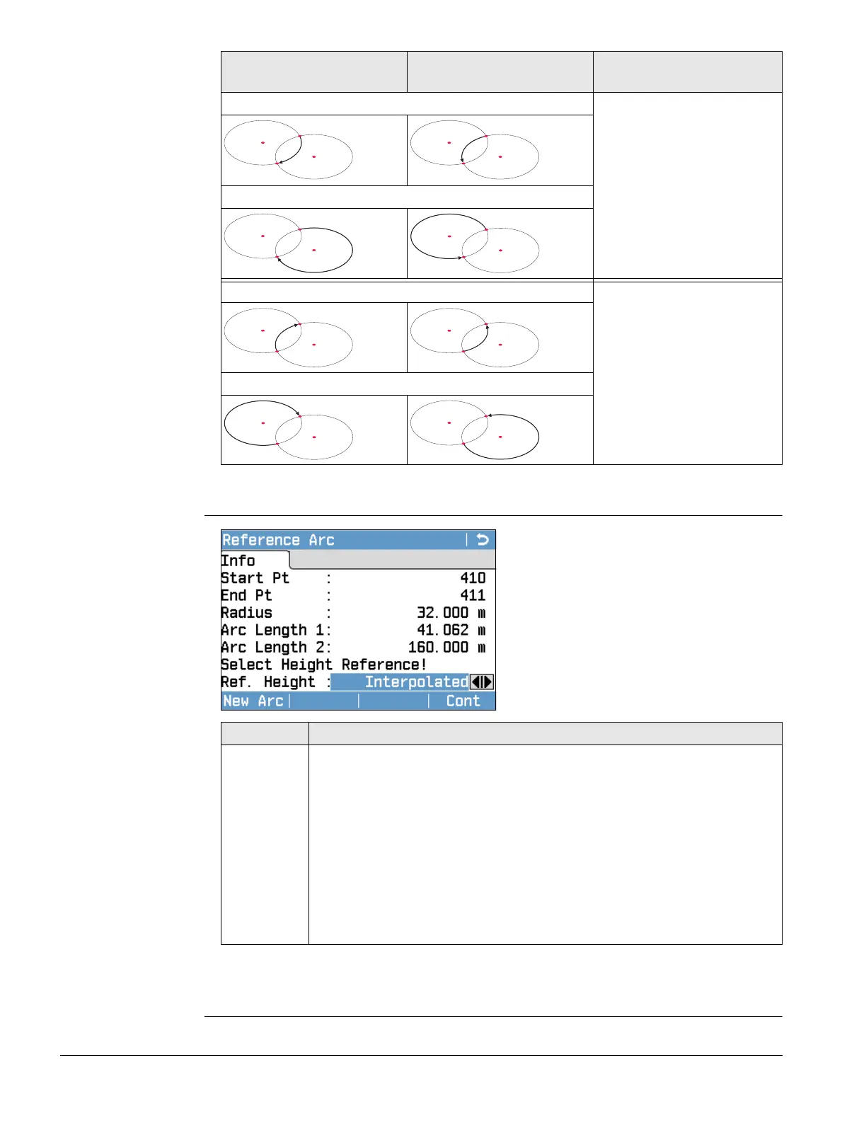 After defining the reference arc the Reference Arc - Info screen will appear.