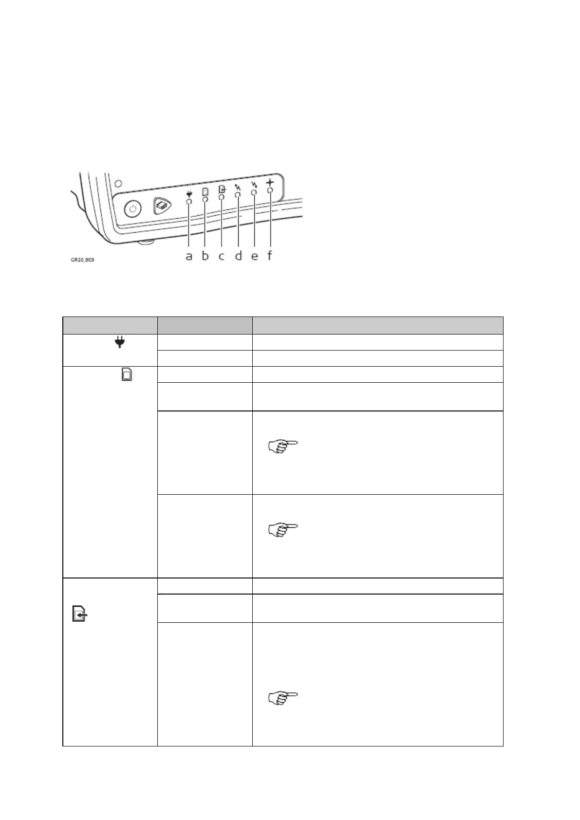 The GR/GM10 has Light Emitting Diode indicators. They indicate the basic instrument status.