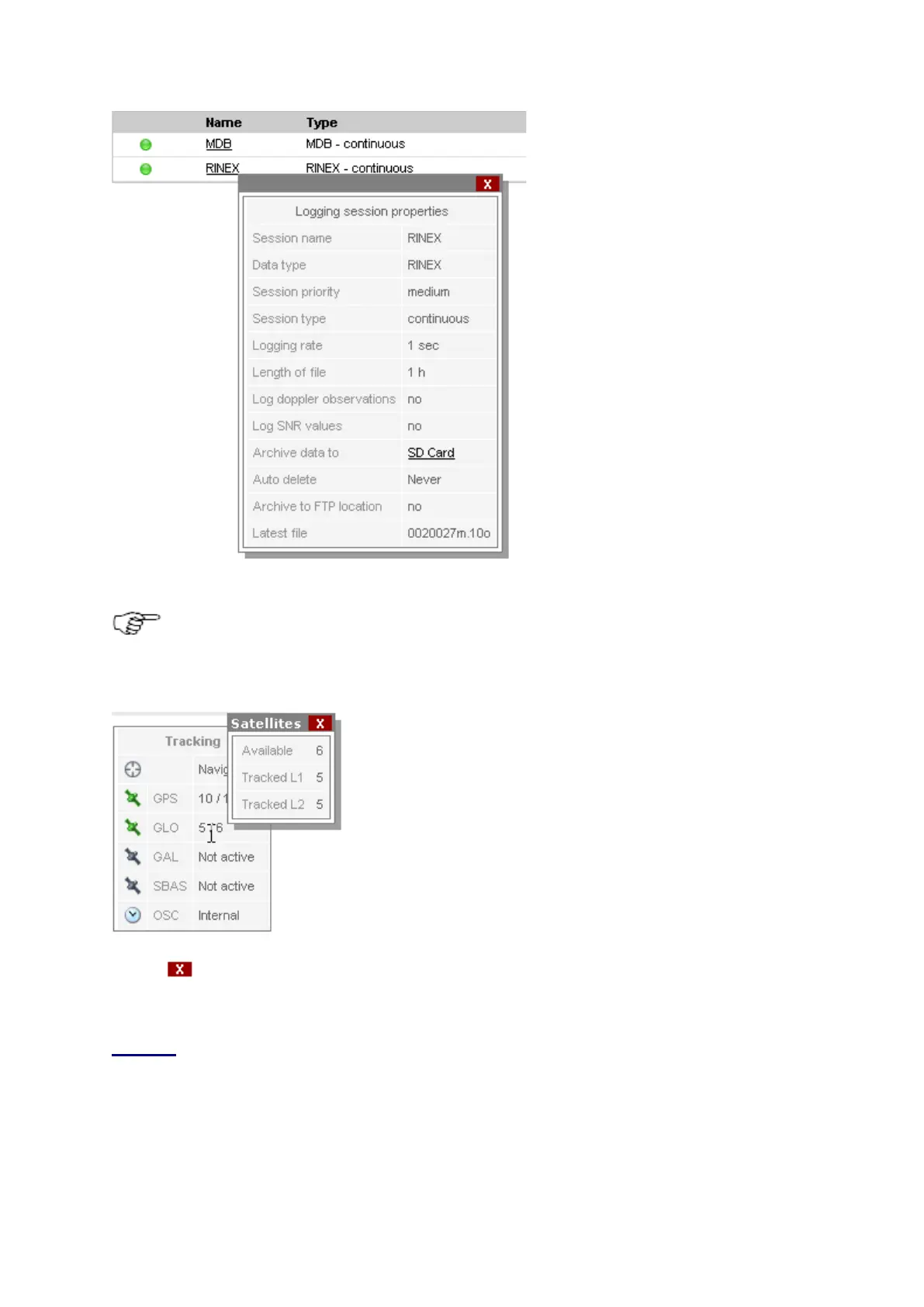 A pop-up box is also opened when clicking on the number of tracked satellites in the Tracking status block.