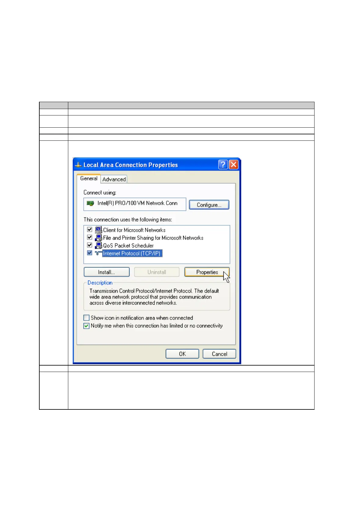Select the Network connection used with the crossed Ethernet cable, right click and select Properties.