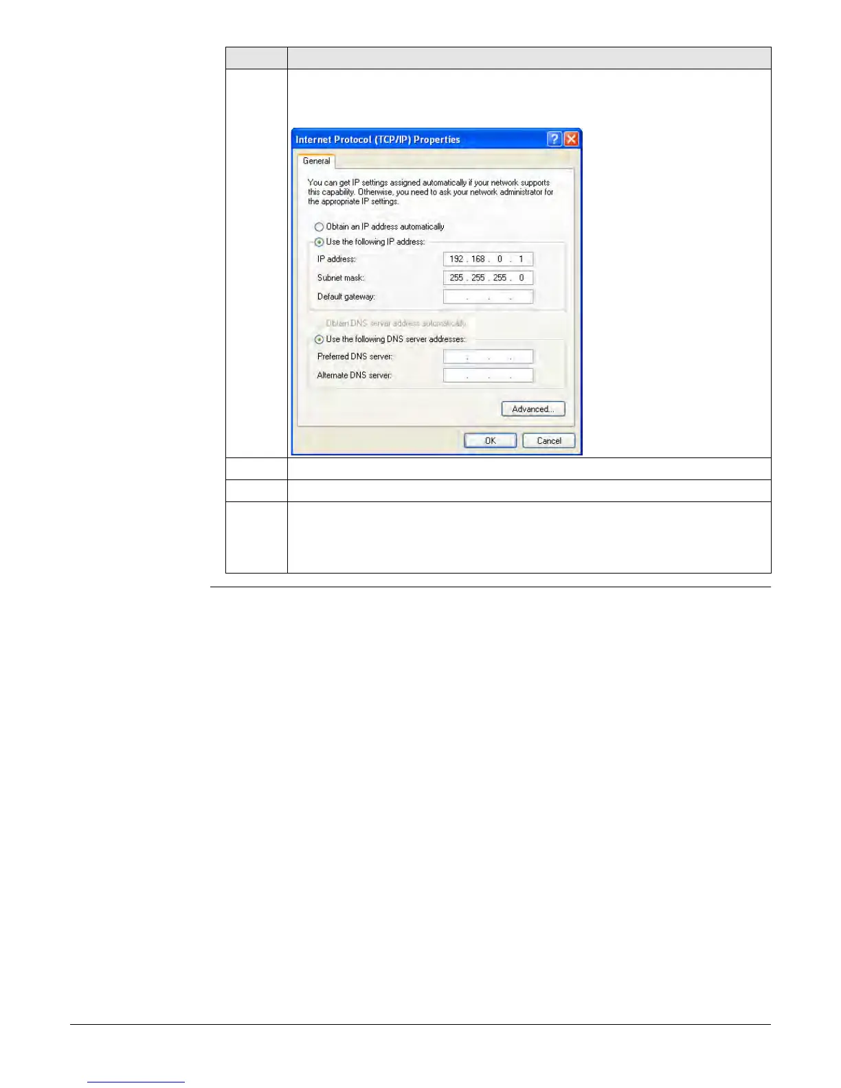 7. Select Use the following IP address and enter