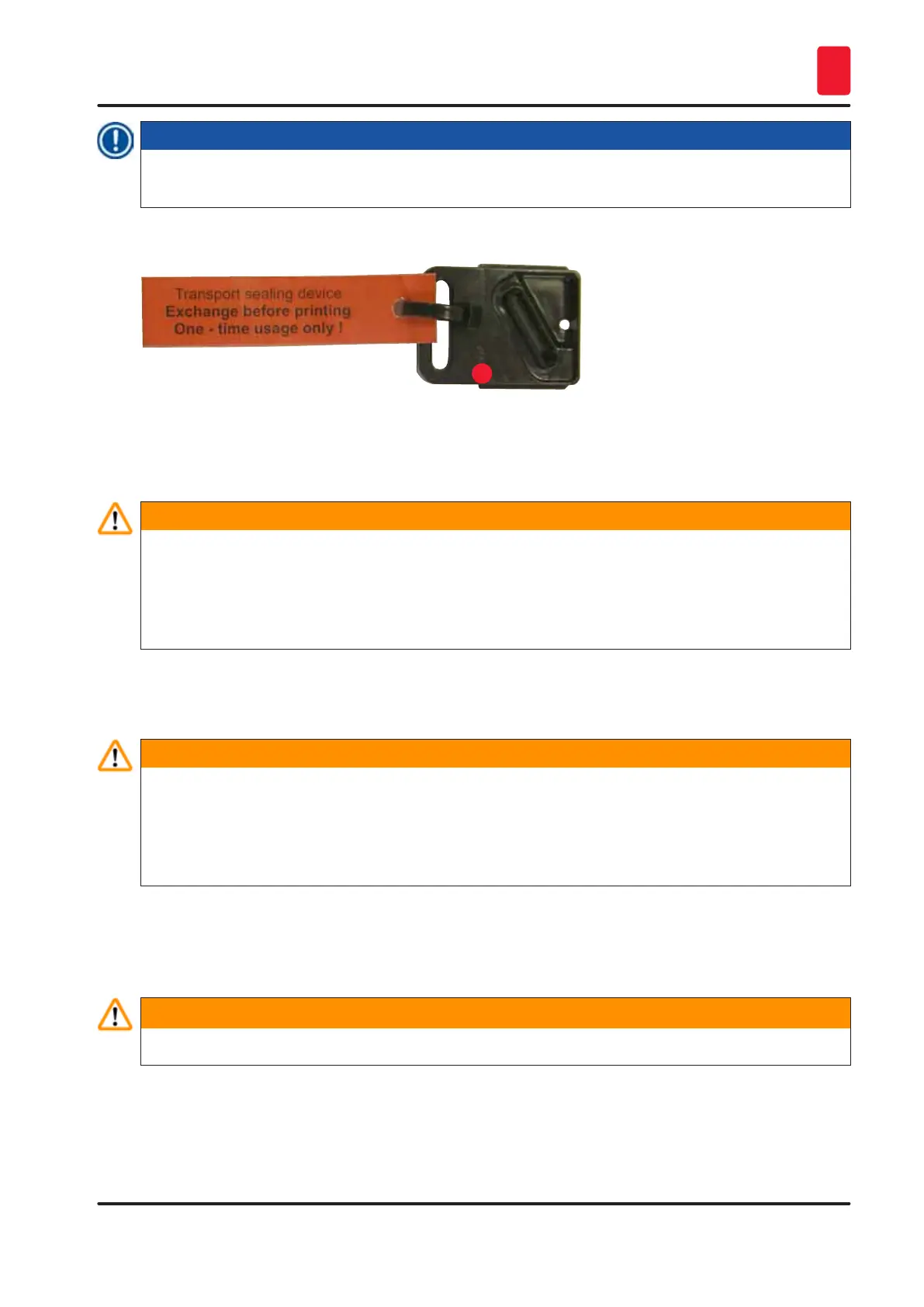 • In order to use the printer again, the transport plate has to be removed and a new exchange plate