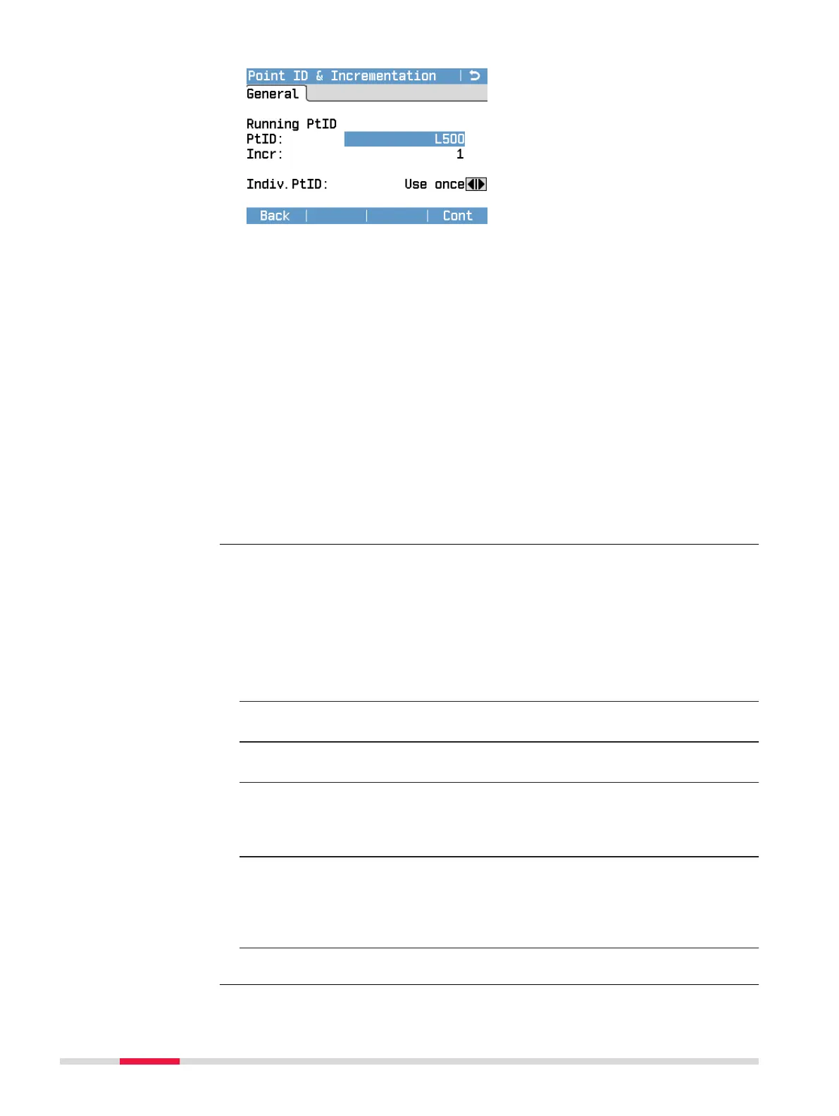 1. In the Point ID & Incrementation menu, dene a default point ID