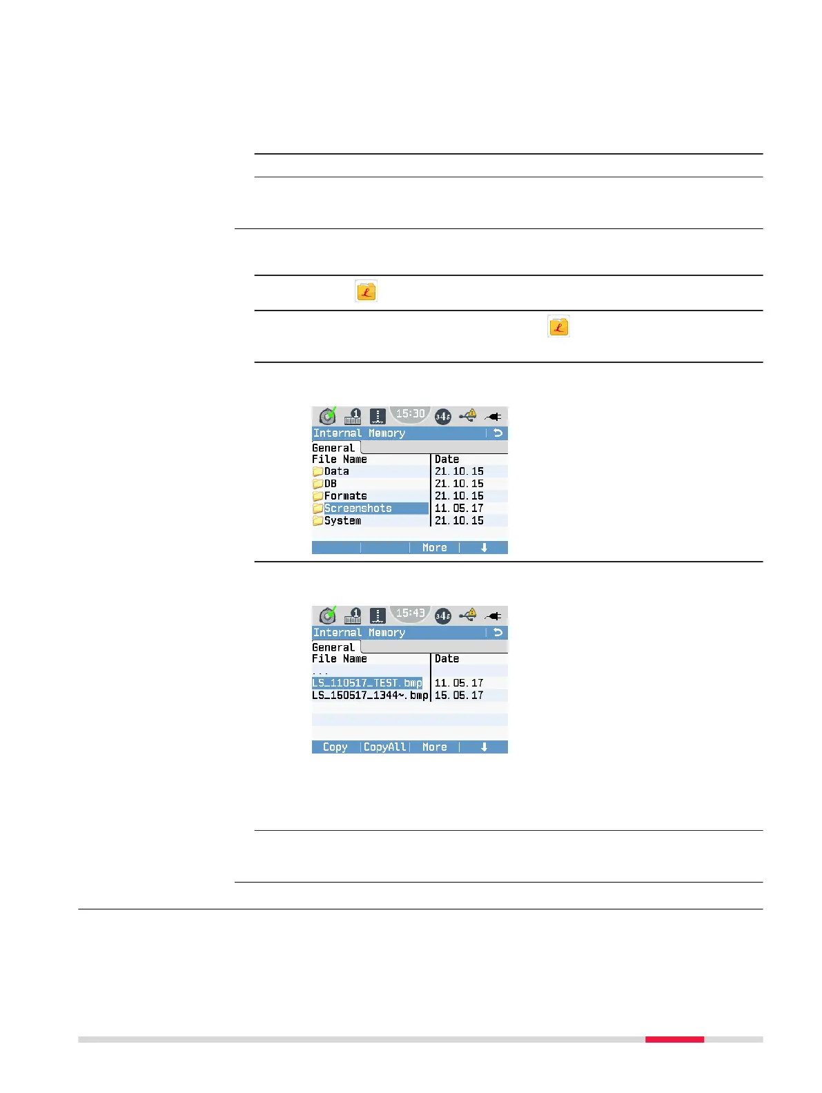 4. Once you highlight the le name of a screenshot, the softkeys Copy