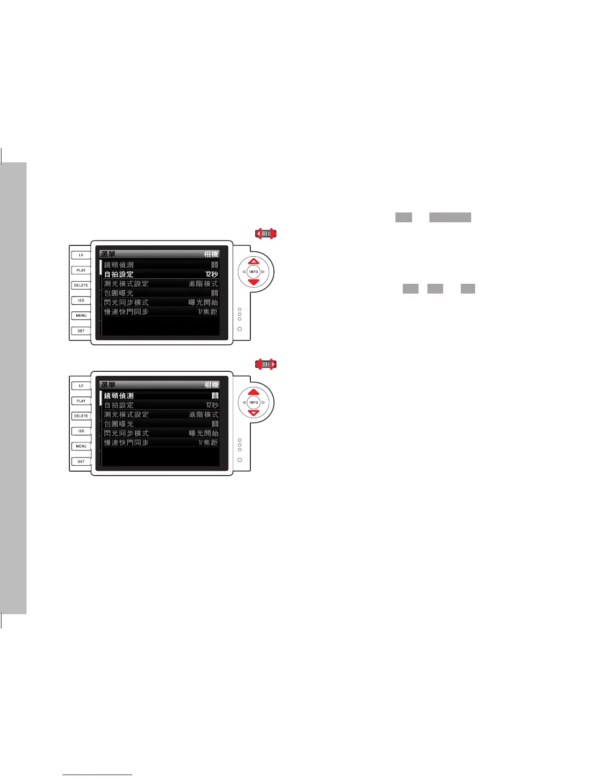 3. 可以使用SET或INFO按鈕,或按右十字鍵,啟動相關子選單。