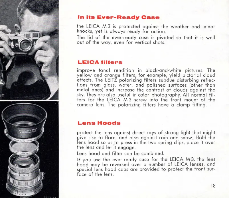 Leica M3 - In its Ever-Ready Case; LEICA filters; Lens Hoods