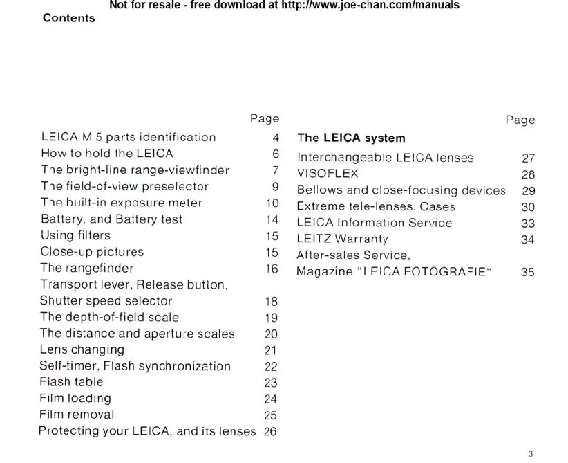 Leica M5 - Contents