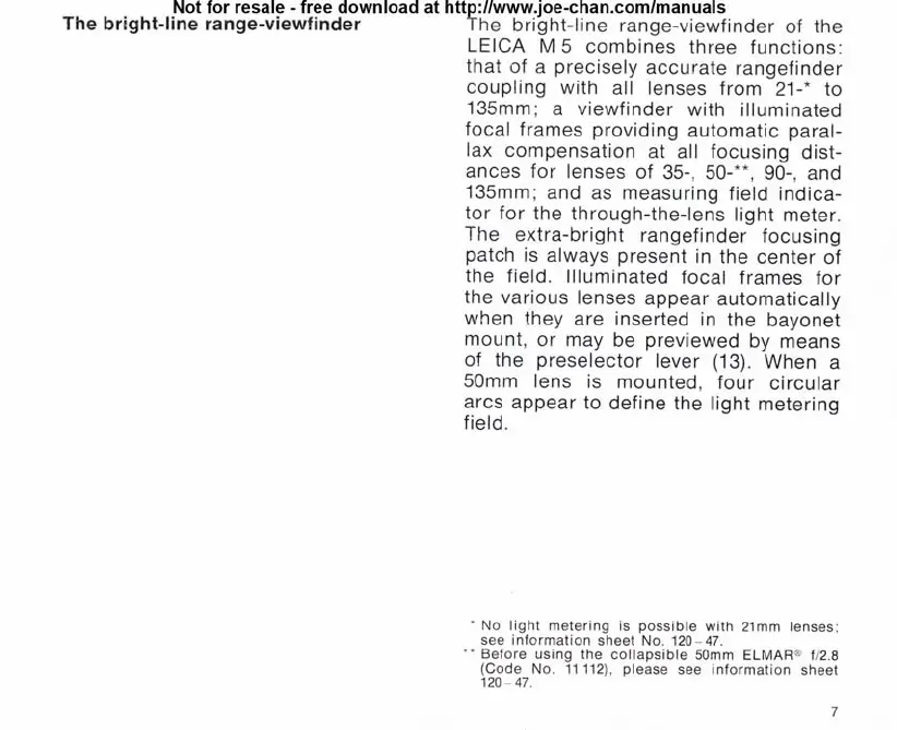 Leica M5 - Leica M 5 Viewfinder and Metering System; Bright-Line Range-Viewfinder