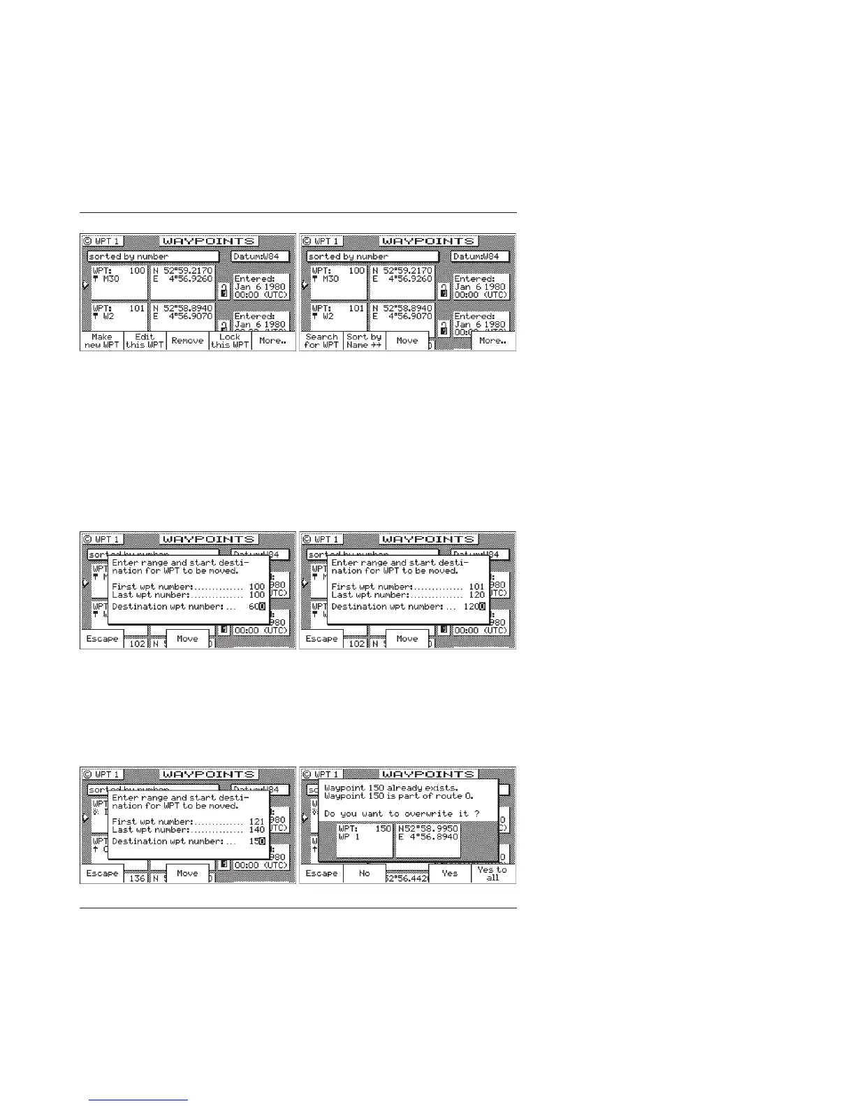 each subsequent waypoint that is to be overwritten, confirming