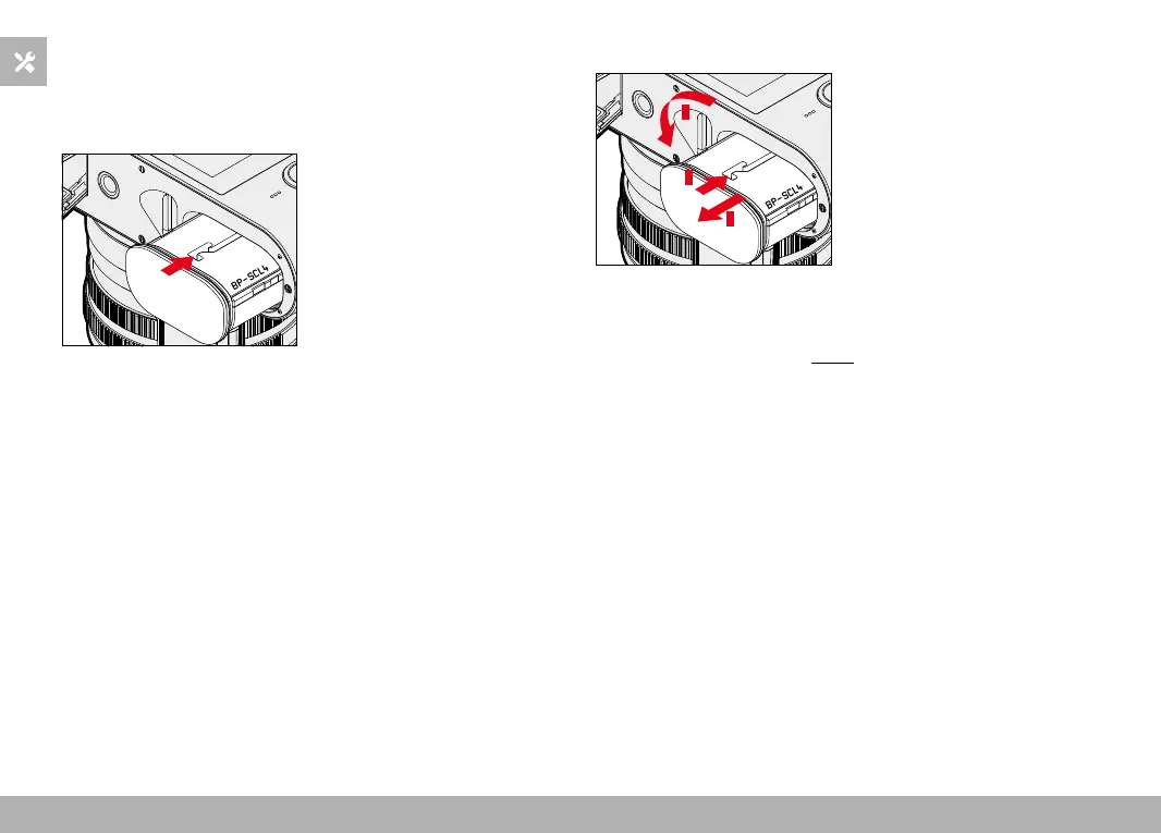 ▸ Press down on the battery lightly
