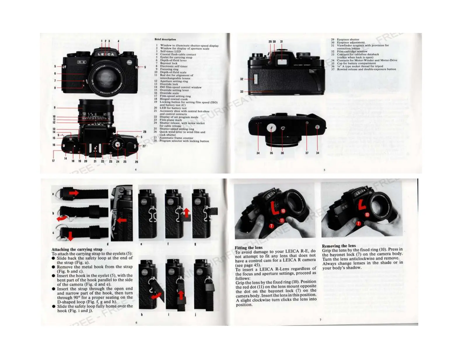 Leica R-E - Attaching the Carrying Strap; Fitting the Lens; Removing the Lens