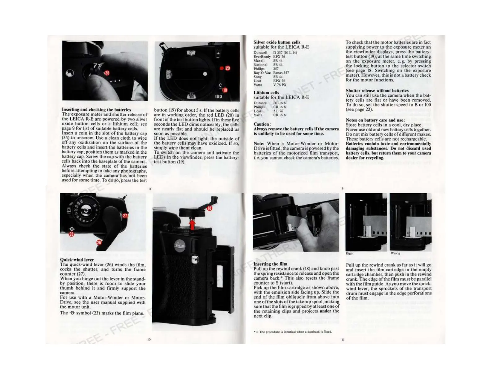 Leica R-E - Inserting and Checking Batteries; Quick-wind Lever; Inserting the Film