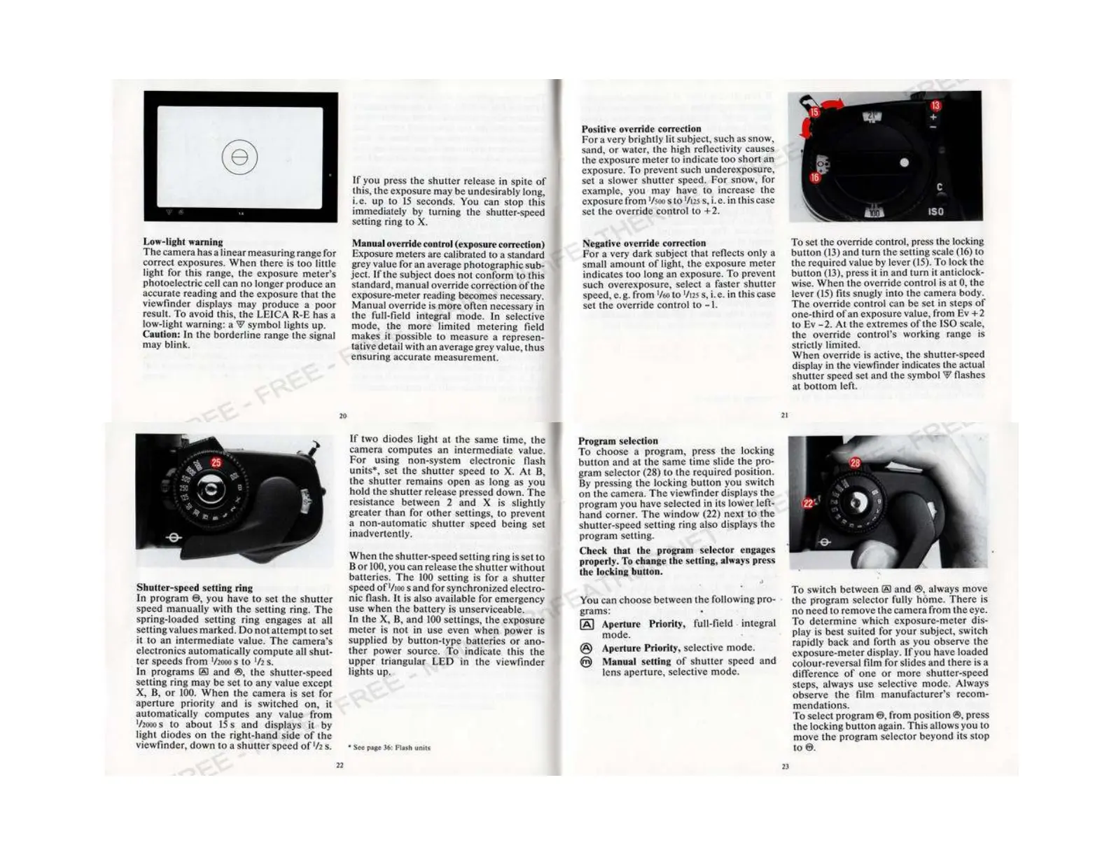 Leica R-E - Low-Light Warning; Manual Override Control (Exposure Correction); Program Selection