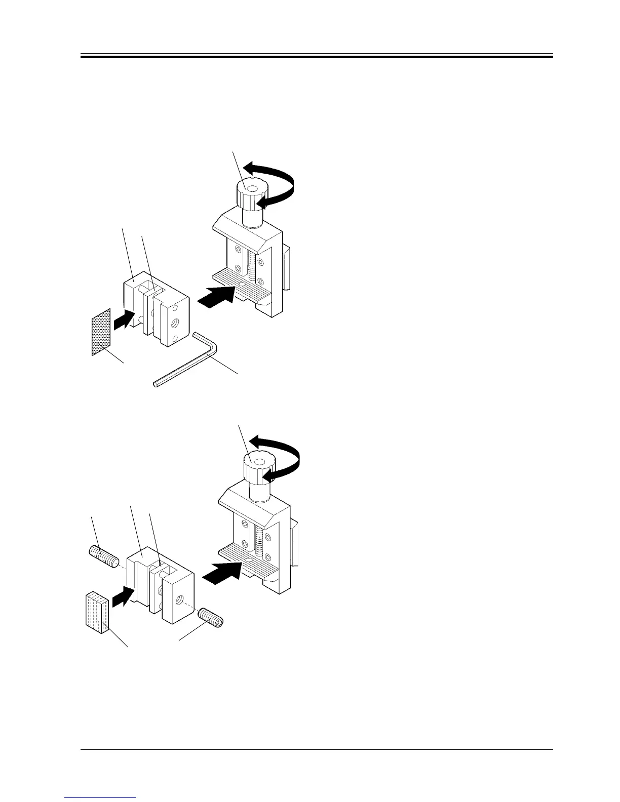 To clamp flat samples, replace the long set screw (5)