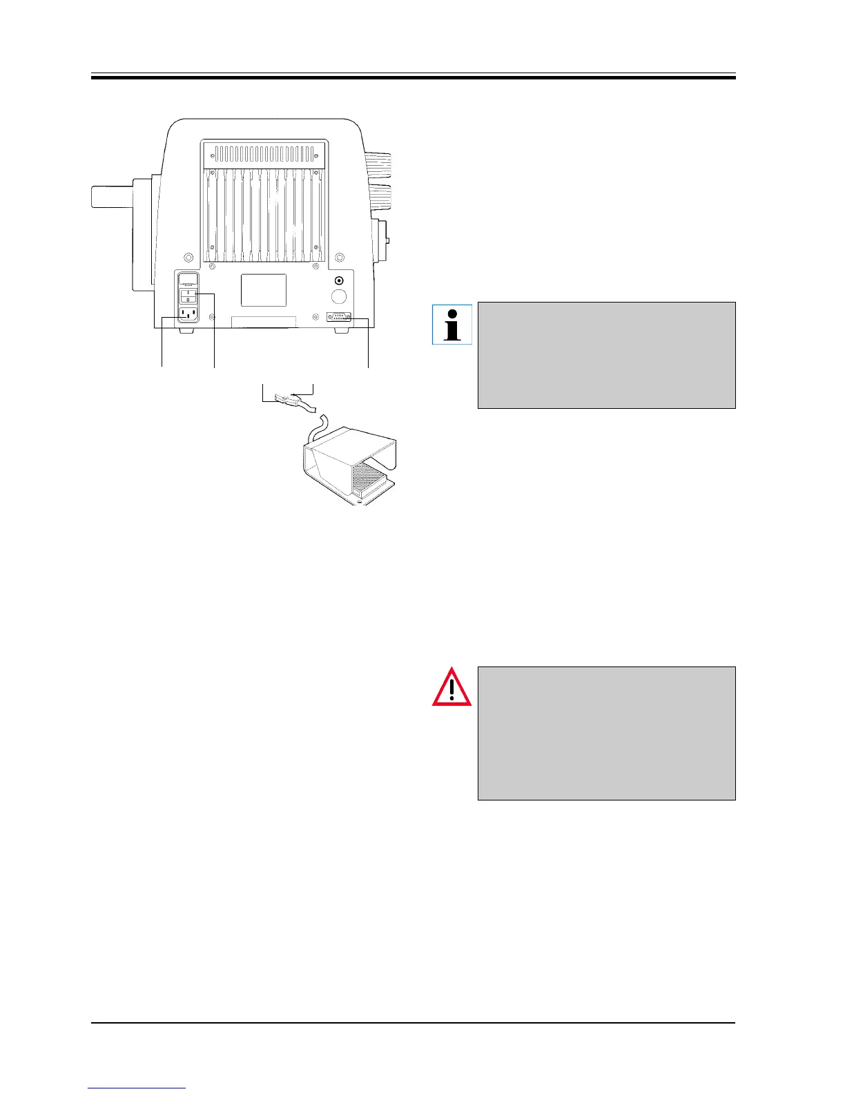 7.2 Connection of foot switch and mains