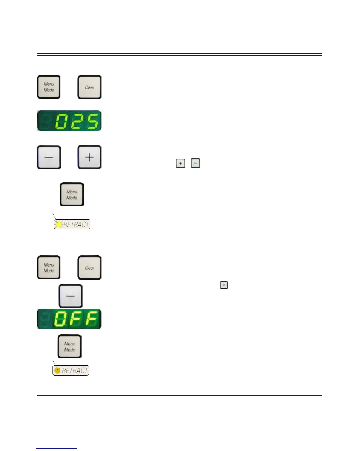 • To call up the retraction settings, press MENU MODE and CLEAR simul-
