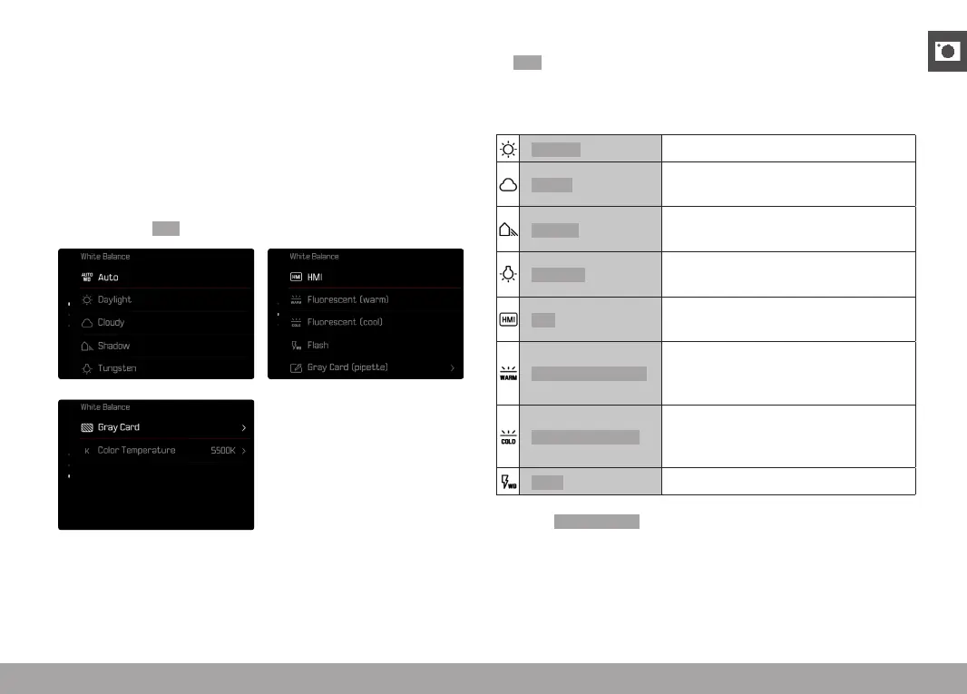 ▸ Select White Balance in the main menu