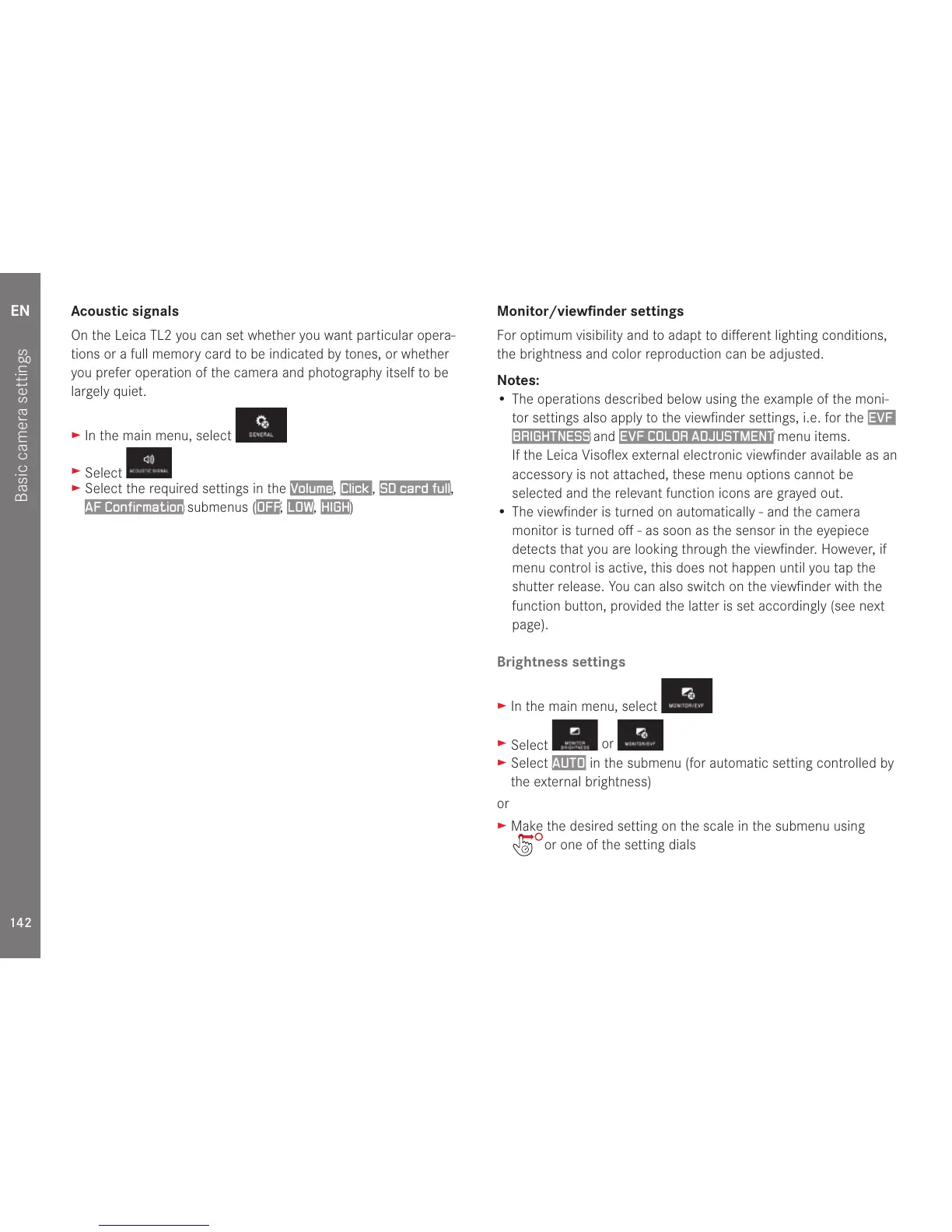 On the Leica TL2 you can set whether you want particular opera-
