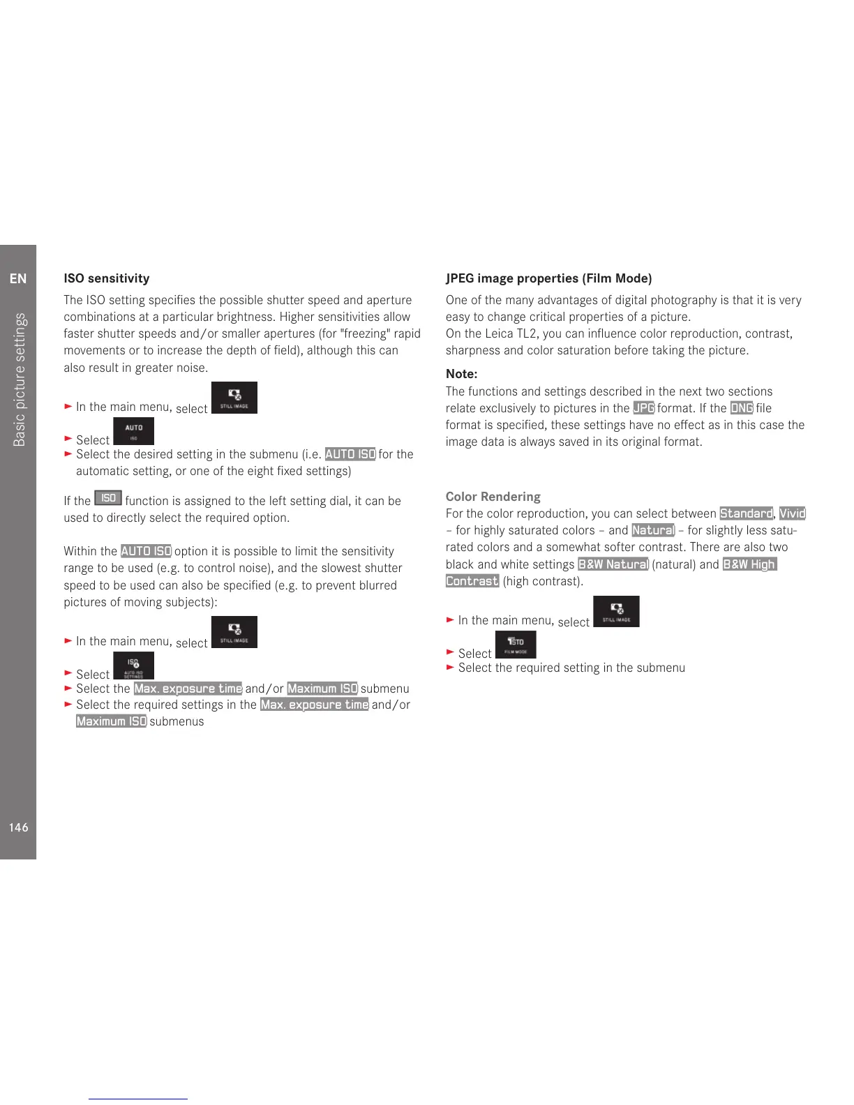 On the Leica TL2, you can influence color reproduction, contrast,